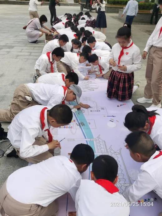在雄壯的國歌中,活動(dòng)徐徐拉開帷幕。揚(yáng)州軍分區(qū)護(hù)旗隊(duì),高舉國旗正步入場(chǎng),并將國旗傳遞給少先隊(duì)員代表。隨后廣場(chǎng)響起清亮的少年先鋒隊(duì)隊(duì)歌:“我們是共產(chǎn)主義接班人,繼承革命先烈的光榮傳統(tǒng)......”,錚錚歌詞、響徹全場(chǎng),回憶青春、心潮澎湃。最后,資產(chǎn)公司、廣陵消防救援站、團(tuán)工委、東關(guān)街道婦聯(lián)等單位代表共同在噴繪上進(jìn)行沙畫作業(yè),表達(dá)心中對(duì)建黨百年的衷心祝愿,少先隊(duì)員們也用手中彩筆描繪東關(guān)錦繡風(fēng)光。