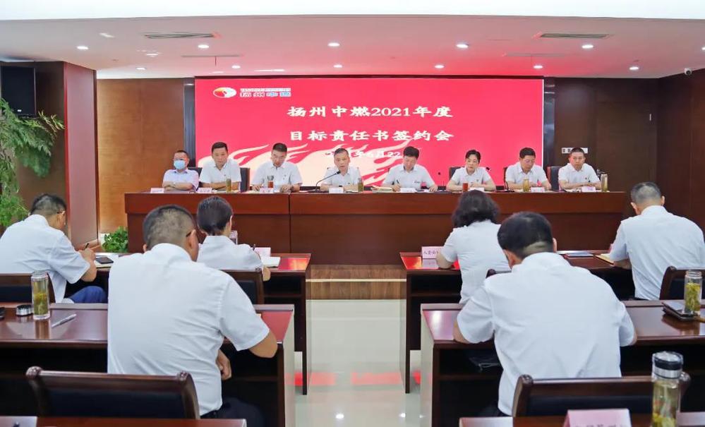 為落實揚州中燃三屆二次董事會決議部署,全面推動公司2021年度各項工作提質(zhì)增效,6月22日上午,公司召開2021年度目標責任書簽約大會,將年度黨風廉政、經(jīng)營目標、安全管理、基層黨建工作任務落地落實落細。公司領導班子成員、中層干部近60人參加會議。
