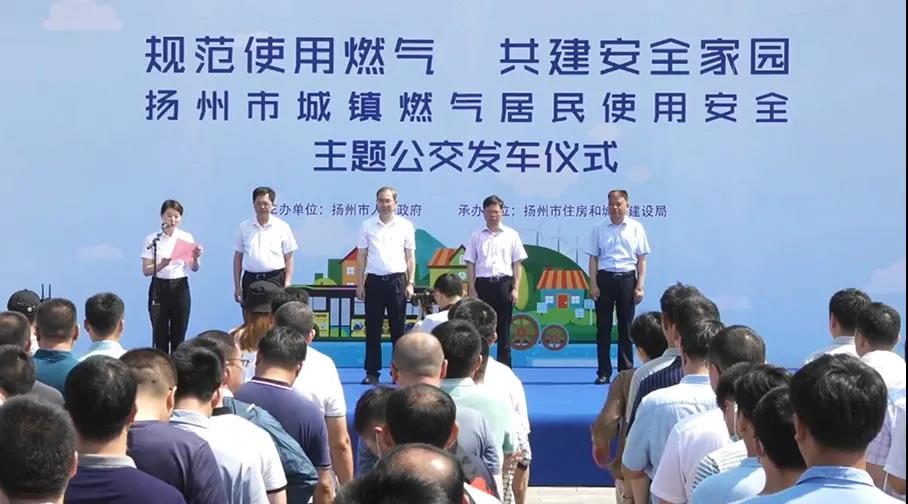 為貫徹落實(shí)習(xí)近平總書記關(guān)于安全生產(chǎn)的重要論述和在黨史學(xué)習(xí)教育動(dòng)員大會(huì)上的重要講話精神,深入推進(jìn)全市城鎮(zhèn)燃?xì)饩用袷褂冒踩捌邆€(gè)一”專項(xiàng)行動(dòng),6月24日上午,揚(yáng)州市政府在明月湖廣場舉辦“城鎮(zhèn)燃?xì)饩用袷褂冒踩黝}公交車發(fā)車儀式”。城控集團(tuán)副董事長戚磊、揚(yáng)州中燃分管負(fù)責(zé)人、“藍(lán)焰衛(wèi)士”參加活動(dòng)。