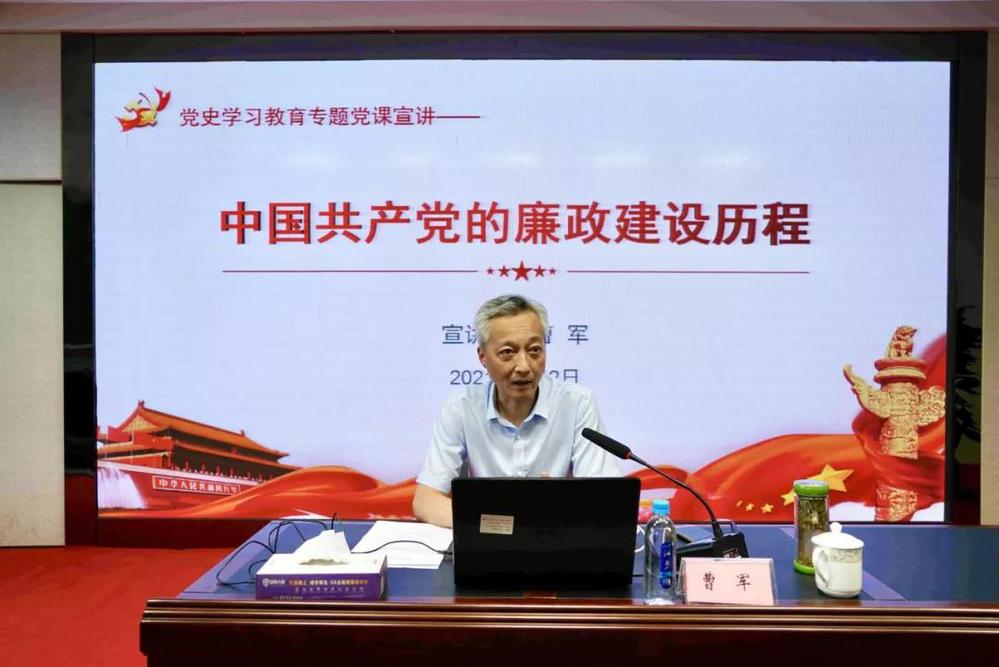 曹軍以《中國共產(chǎn)黨的廉政建設(shè)歷程》為題,從新民主主義革命時期的廉政建設(shè)、社會主義革命和建設(shè)時期的廉政建設(shè)、改革開放和社會主義現(xiàn)代化建設(shè)新時期的廉政建設(shè)、中國特色社會主義新時代的廉政要求四個階段,學(xué)習(xí)回顧了中國共產(chǎn)黨廉政建設(shè)的歷史經(jīng)驗,結(jié)合當(dāng)前反腐倡廉形勢分析了問題,對下一步反腐敗工作提出了要求。