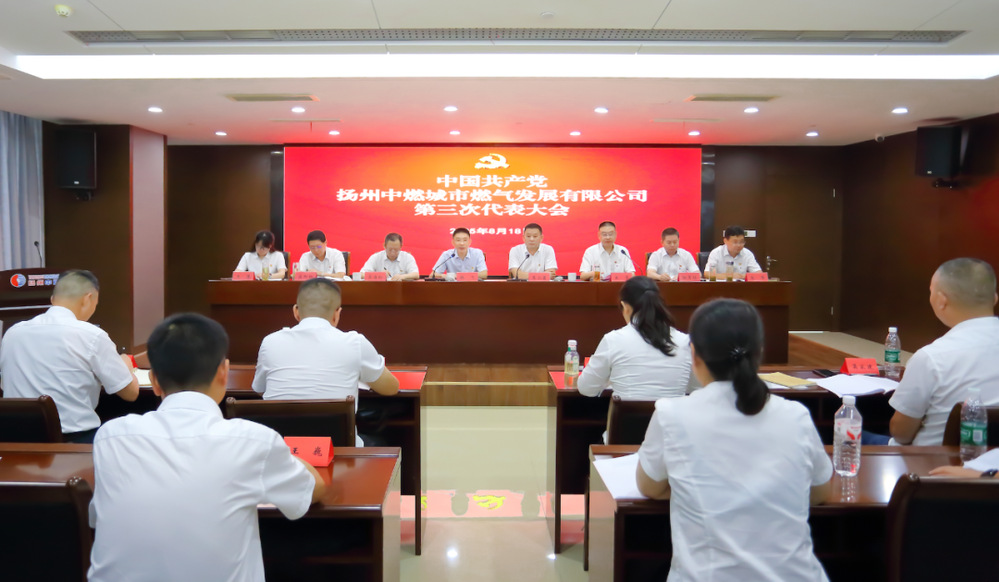 8月18日下午,揚州中燃公司召開第三次黨員代表大會。城控集團黨委副書記徐飛到會指導(dǎo)并講話,揚州中燃公司領(lǐng)導(dǎo)班子成員、黨員代表、列席代表參加會議。