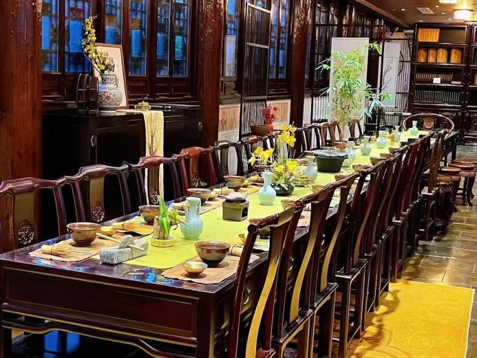 當(dāng)意大利濃縮遇上揚州魁龍珠,當(dāng)小麥精釀碰撞綠楊春,東關(guān)街的青石板路上,正流淌著一條無形的文化河。這里沒有刻意的中西結(jié)合,只有歲月沉淀后的自然交融。在長樂客棧,清代鹽商宅院的木構(gòu)梁架下,工業(yè)風(fēng)吧臺與磚雕門樓悄然對話。咖啡師以鹽商故事為靈感調(diào)制東關(guān)特調(diào),拉花時非遺剪紙的鏤空紋樣在奶泡上流轉(zhuǎn),古琴曲《平沙落雁》的余音里,揚州評話的念白與咖啡機的蒸汽聲交織成獨特的背景樂。深入客棧竹影婆娑的月洞門,春川茶寮似一卷未展開的揚州園林手札,它以春水煎茶,川流載道為魂,將揚州二十四景的留白意境,化作三進茶空間的起承轉(zhuǎn)合。而轉(zhuǎn)過街巷口的東關(guān)集,漢森熊啤酒屋的木質(zhì)酒桶上,漆器工藝的揚州地圖正泛著微光,精釀師以運河漕運為靈感,釀出東關(guān)碼頭小麥啤——麥芽香中,竟飄著幾分藕粉的清甜。
