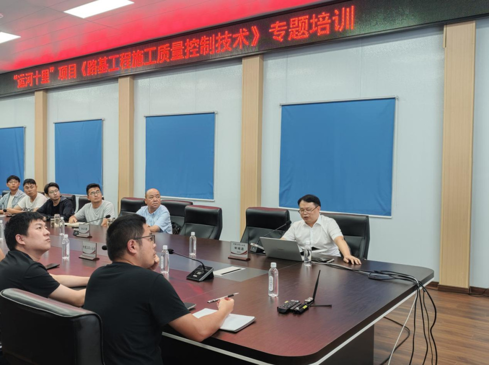 主講人以“路基工程施工質(zhì)量控制技術(shù)”為題,引用路基工程施工真實(shí)案例,從施工準(zhǔn)備、施工流程、施工要點(diǎn),到常見施工問題及建議,細(xì)致而全面地講解了改良土路基施工和雙向攪拌樁路基施工的技術(shù)工藝及質(zhì)量控制,培訓(xùn)內(nèi)容兼具技術(shù)性、針對性和可操作性,為“運(yùn)河十里”項目后續(xù)建設(shè)工作打下堅實(shí)基礎(chǔ)。