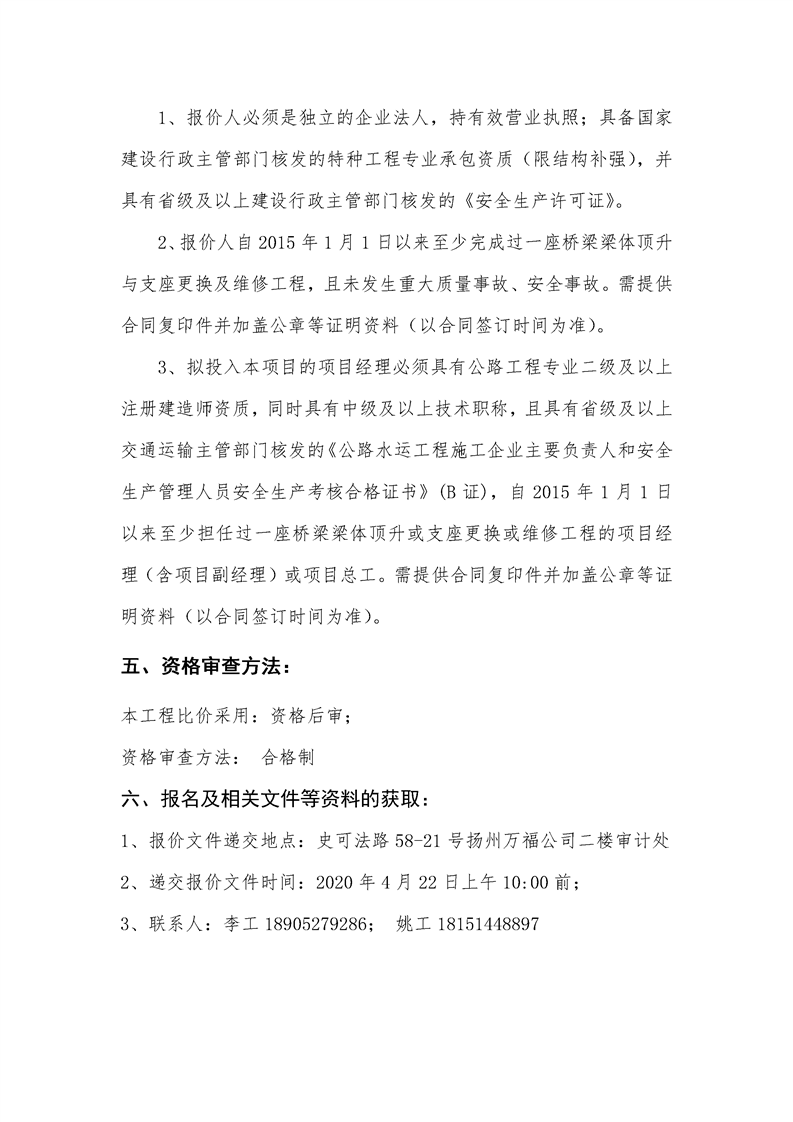 江陽大橋(新橋部分)引橋支座維修處理工程比價(jià)文件.doc