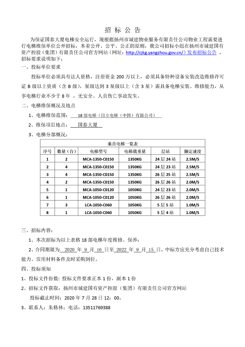 國泰大廈電梯維保招標(biāo)文件.doc