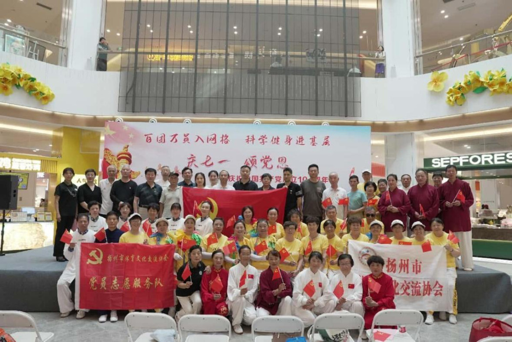 活動(dòng)現(xiàn)場(chǎng),社區(qū)健身隊(duì)通過活力四射的紅色主題廣場(chǎng)舞和剛?cè)峁矟?jì)的太極表演,展現(xiàn)了紅色情懷,豐富了全民健身活動(dòng)內(nèi)涵;“黨史+健身”主題互動(dòng)問答環(huán)節(jié)亮點(diǎn)頻出,通過百年黨史與科學(xué)健身知識(shí)的巧妙結(jié)合,讓參與者在趣味競(jìng)答中感悟紅色力量、收獲健康知識(shí)。隨著全體人員齊聲高唱《沒有共產(chǎn)黨就沒有新中國》,激昂的歌聲將活動(dòng)推向高潮。
