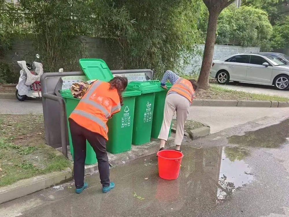 巡查時,陳阿姨發(fā)現(xiàn)佳園垃圾分類站旁有散落的垃圾,立即聯(lián)系清運車。等處理完回到休息室,已是晚上7點。她喝了口水,又拿起手電筒去檢查樓道衛(wèi)生。數(shù)據(jù)顯示,當(dāng)日保潔團隊清運垃圾2.3噸,擦拭公共設(shè)施137處,清理衛(wèi)生死角9處。
