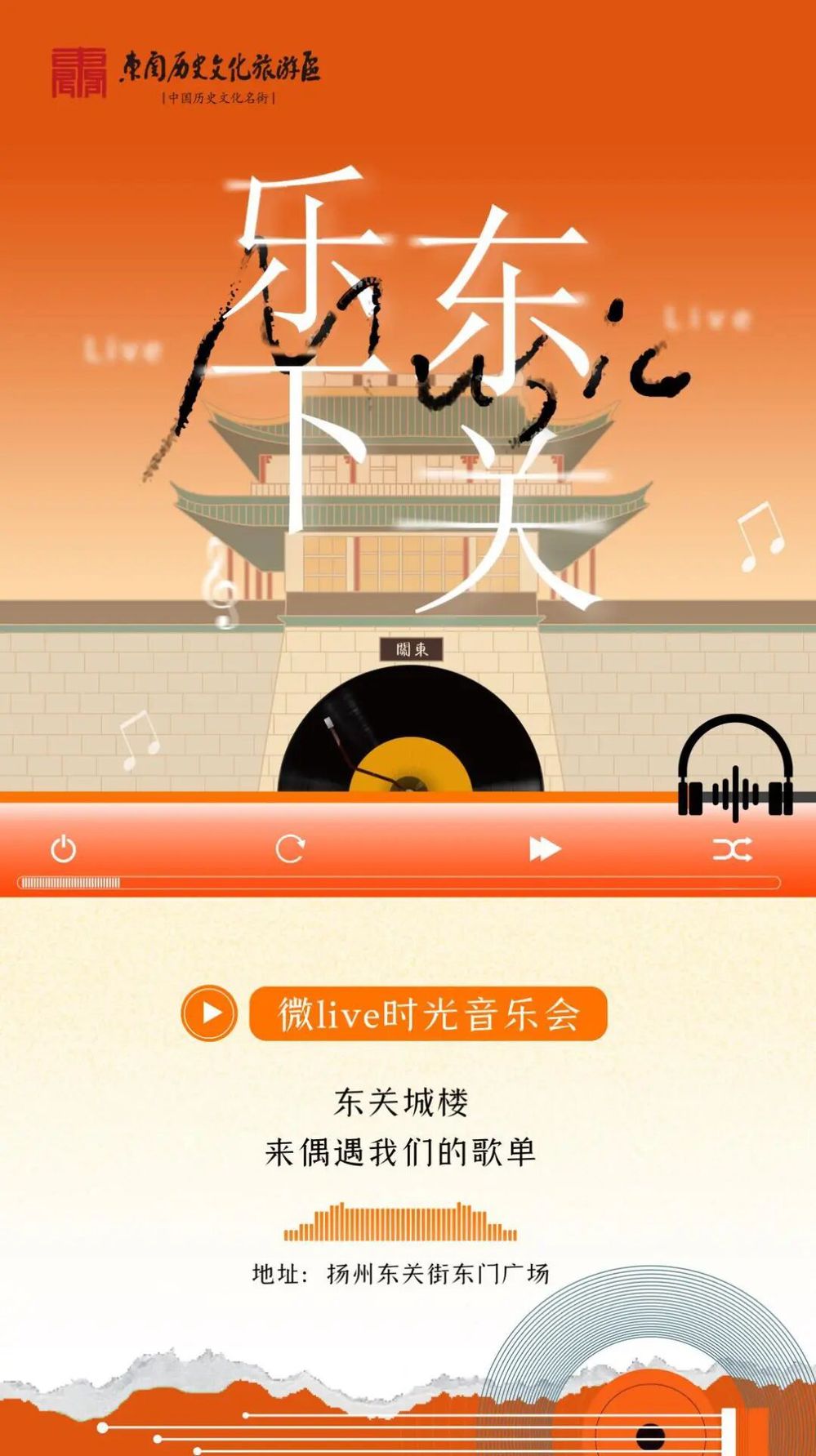 揚(yáng)州東關(guān)街,這座承載著千年歷史的文旅名片,青磚黛瓦間流淌著廣陵古城的煙火與韻味。為進(jìn)一步挖掘其文旅潛力,推動音樂藝術(shù)與古城文化深度融合,響應(yīng)文旅產(chǎn)業(yè)高質(zhì)量發(fā)展需求,推動古城夜經(jīng)濟(jì),揚(yáng)州市名城建設(shè)有限公司擬舉辦 “樂下東關(guān)” 微 Live 時光音樂會,讓千年城墻下響起 “流動的樂章”,為市民與游客帶來全新的文化體驗(yàn)。